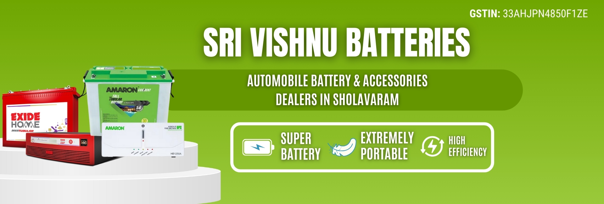 Founded in 2017 in Sholavaram, Chennai, Sri Vishnu Batteries has grown to become a trusted name for inverter batteries, automobile batteries, oil lubrication products, distilled water, car sensor checkup, solar panel sales & service, and automobile accessories. Over the years, our business has built a strong reputation for quality, reliability, and excellent customer support. Whether you need a replacement battery, automobile lights, self motors, solar panel solutions, diagnostics, distilled water, or lubrication products, you can count on us for top brands and prompt service.